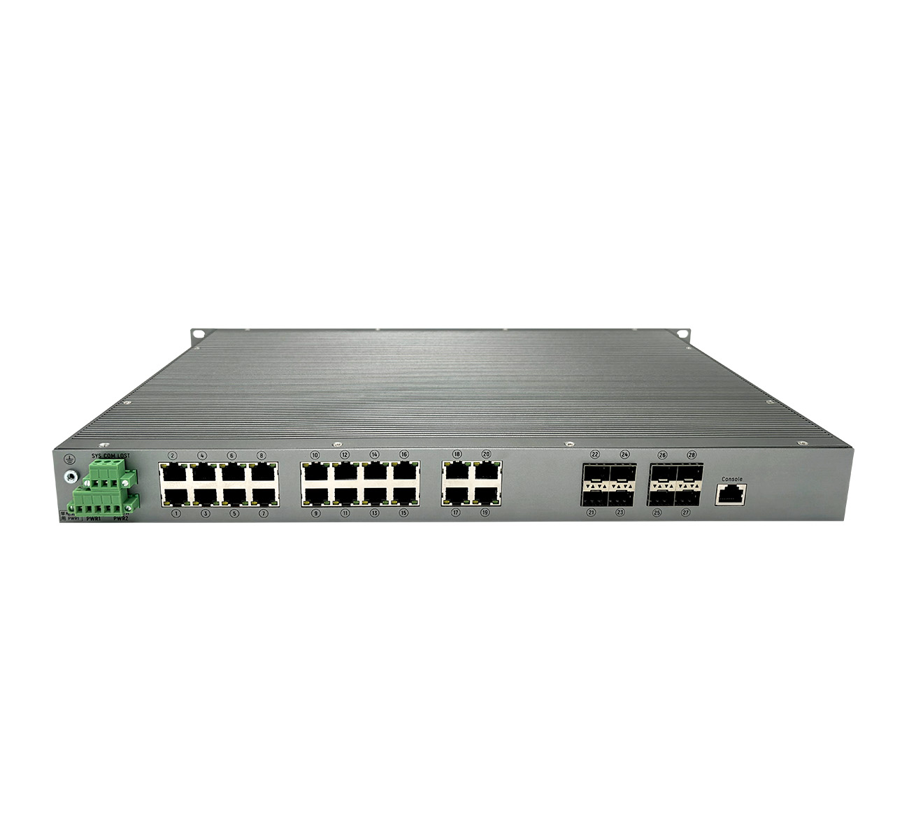 S7100P系列交換機(jī)采用高性能的工業(yè)級芯片和優(yōu)秀的工業(yè)設(shè)計,可在所有端口滿負(fù)載運行下保持線速轉(zhuǎn)發(fā),產(chǎn)品的設(shè)計制造充分考慮了工業(yè)應(yīng)用環(huán)境中的各種惡劣條件和干擾因素,能滿足高低溫、過電壓、漏電及高壓沖擊等各種要求。本系列設(shè)備最多可支持24個POE端口供電,采用全金屬外殼設(shè)計,防護(hù)等級IP40,支持機(jī)架式安裝。適用于石油石化、交通、電力等各個行業(yè)。